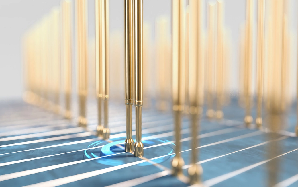 Our classic GKS-100 series of test probes with a 100-mil pitch are used for classic solar cells with busbars and are installed in specialised contact strips. Flat head geometries are recommended, either passive or with an inverse cone or wafer structure. In combination with low spring forces of up to 1 N, they ensure gentle contacting while providing precise current and voltage measurement.