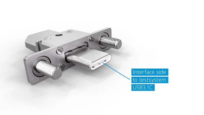 The test plug is integrated into the test fixture and connected via a standard USB3.1C cable, ensuring that it fits seamlessly into the test setup. In addition to plug connector testing, it also enables reliable testing of complete USB-C cables, such as those used for power supply, data transmission and image signal transmission in common USB-C applications.