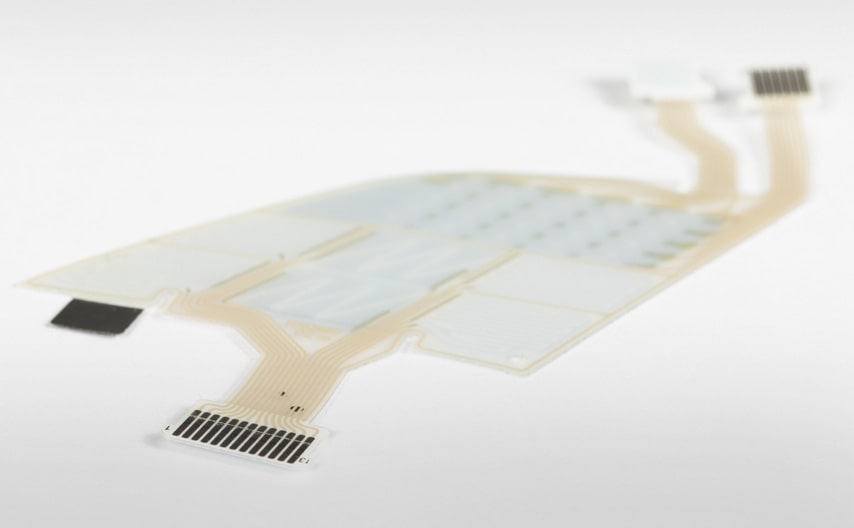 Flexible printed circuit boards (FPCs) are becoming increasingly important. Invented back in the 1950s, their widespread use in commercial applications began in the 1980s. In contrast to conventional, rigid printed circuit boards, the insulating layer that contains the conductive tracks and other switching elements is not made of hard plastics, but of flexible films - usually polyimides. These are characterised by high heat resistance (up to 230 °C, briefly up to 400 °C), low degassing, high radiation resistance and excellent insulating properties - ideal properties for FCBs.