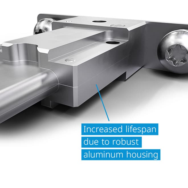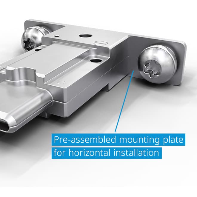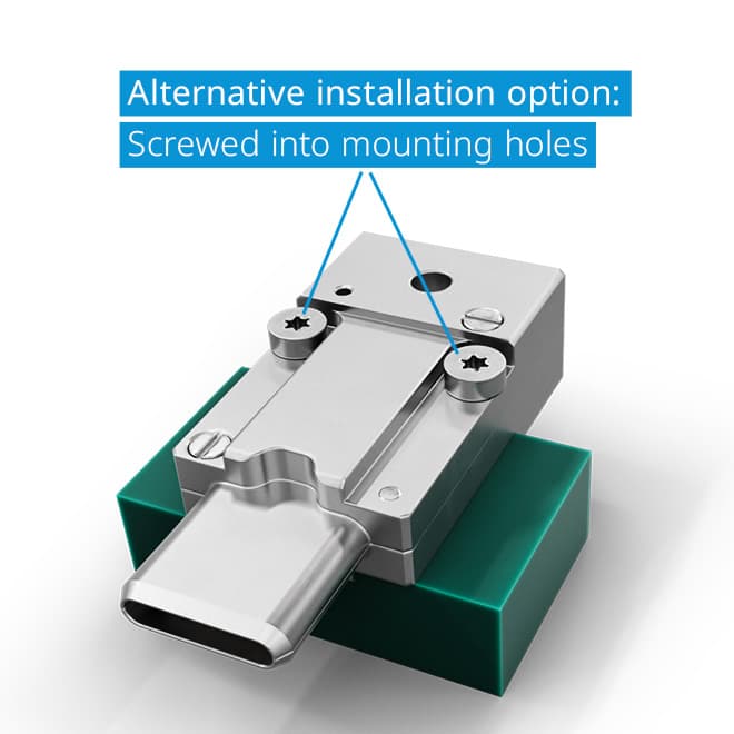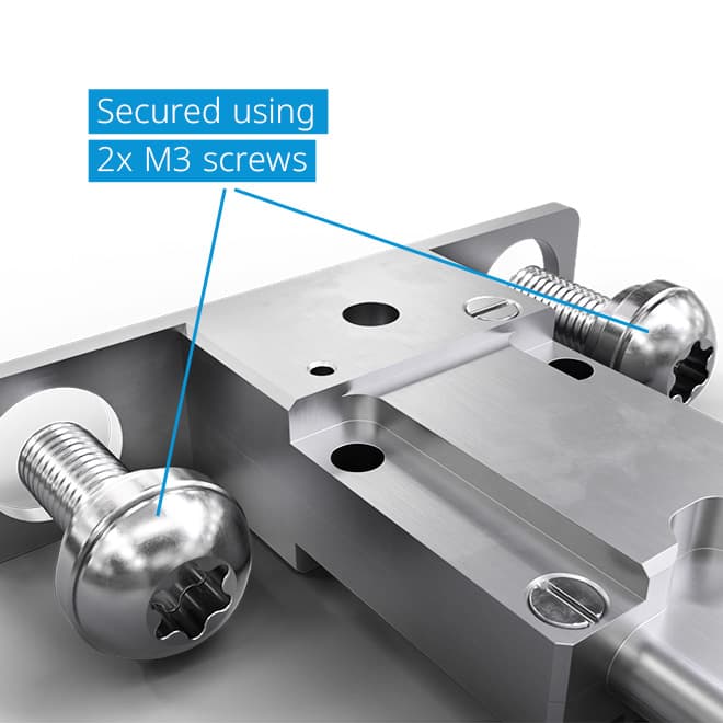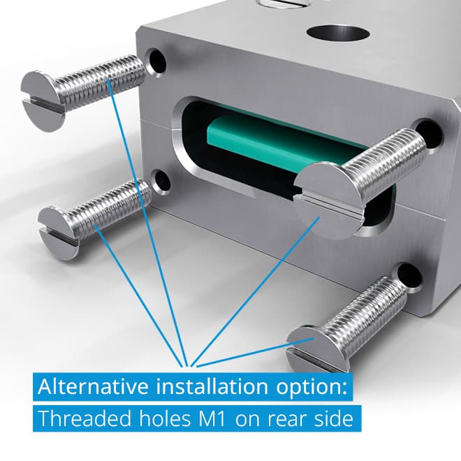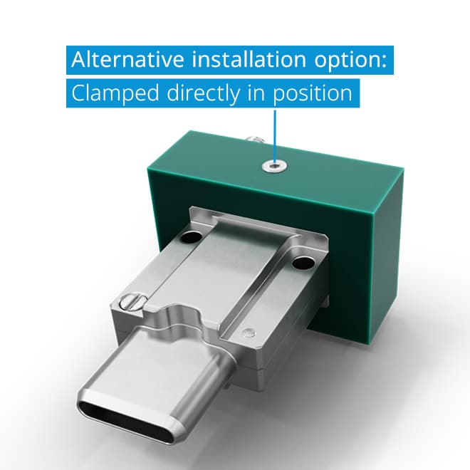 - Various installation options and optionally available spring elements (112863: set 2x - 5N) allow tolerances of ± 0.4 mm and angular errors to be compensated