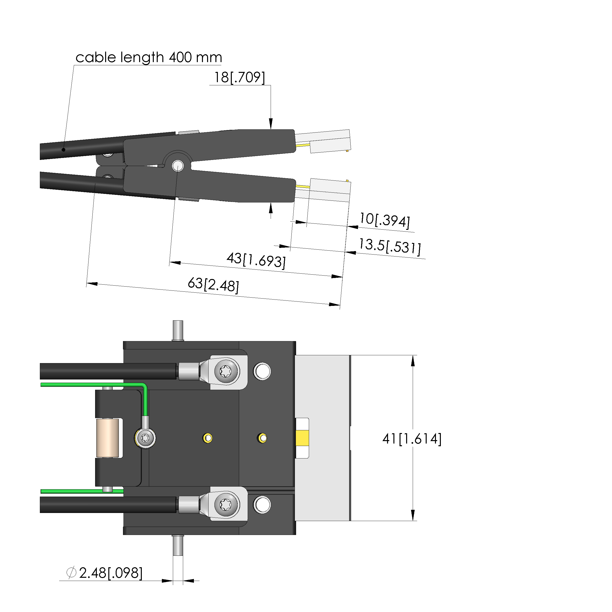 - Connection with pre-assembled cables in 400 mm length