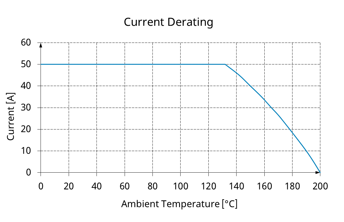 - Current load capacity / rated current: 50 A