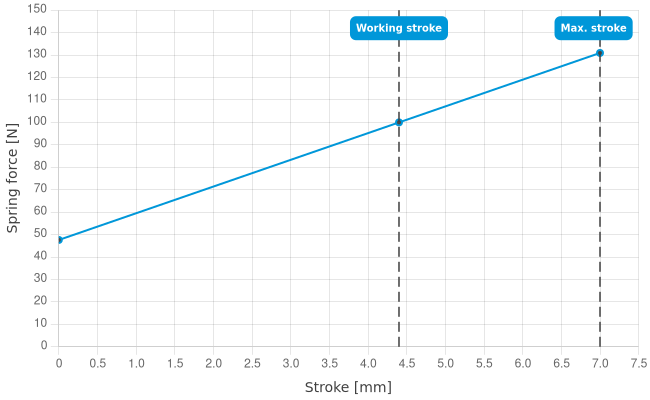 | Spring force at working stroke: | 100 N [359 ozf] |