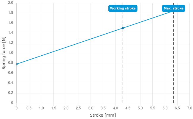 • Spring force at working stroke: 1.5 N [5.39 ozf]