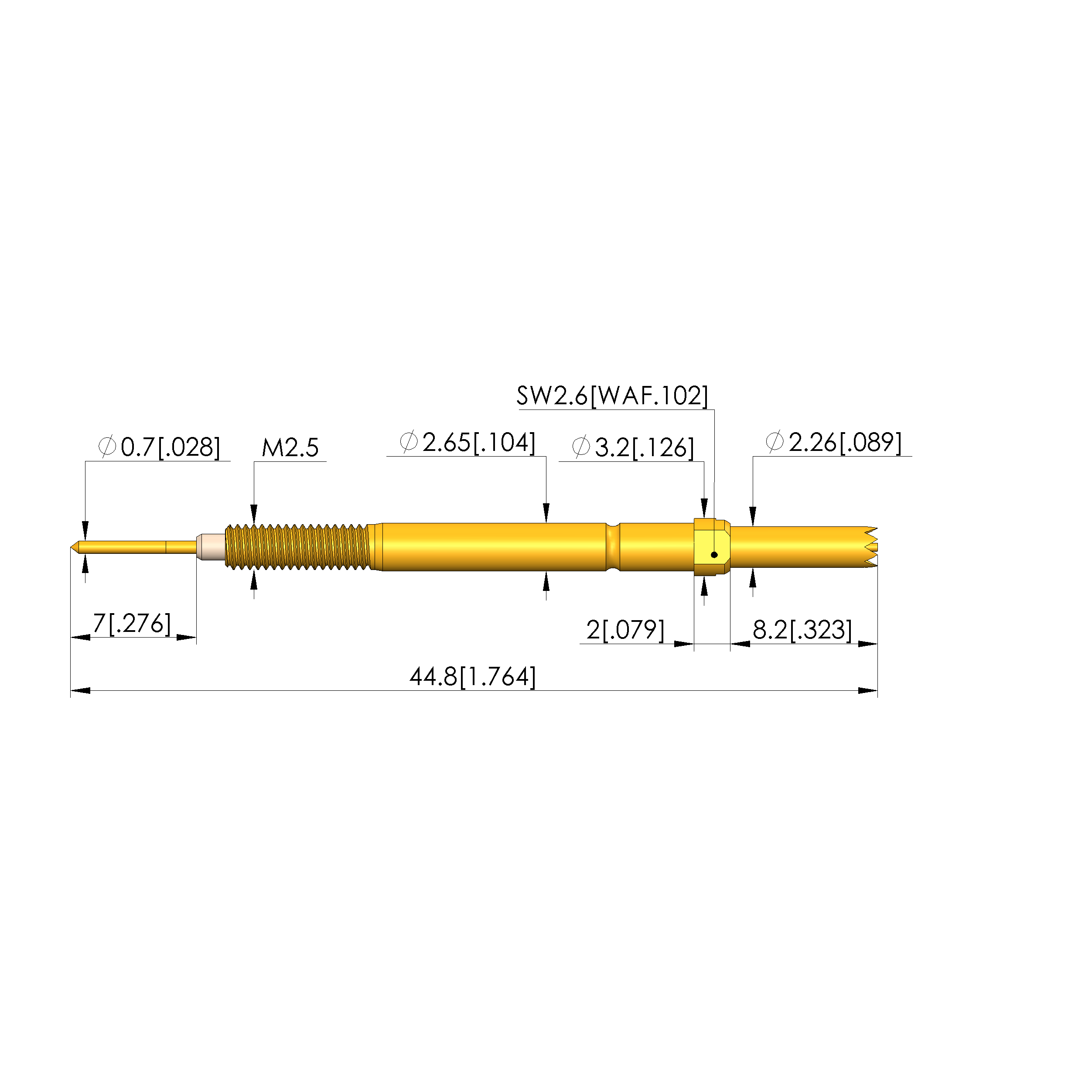- Barrel diameter: 2.65 mm [.104 in]