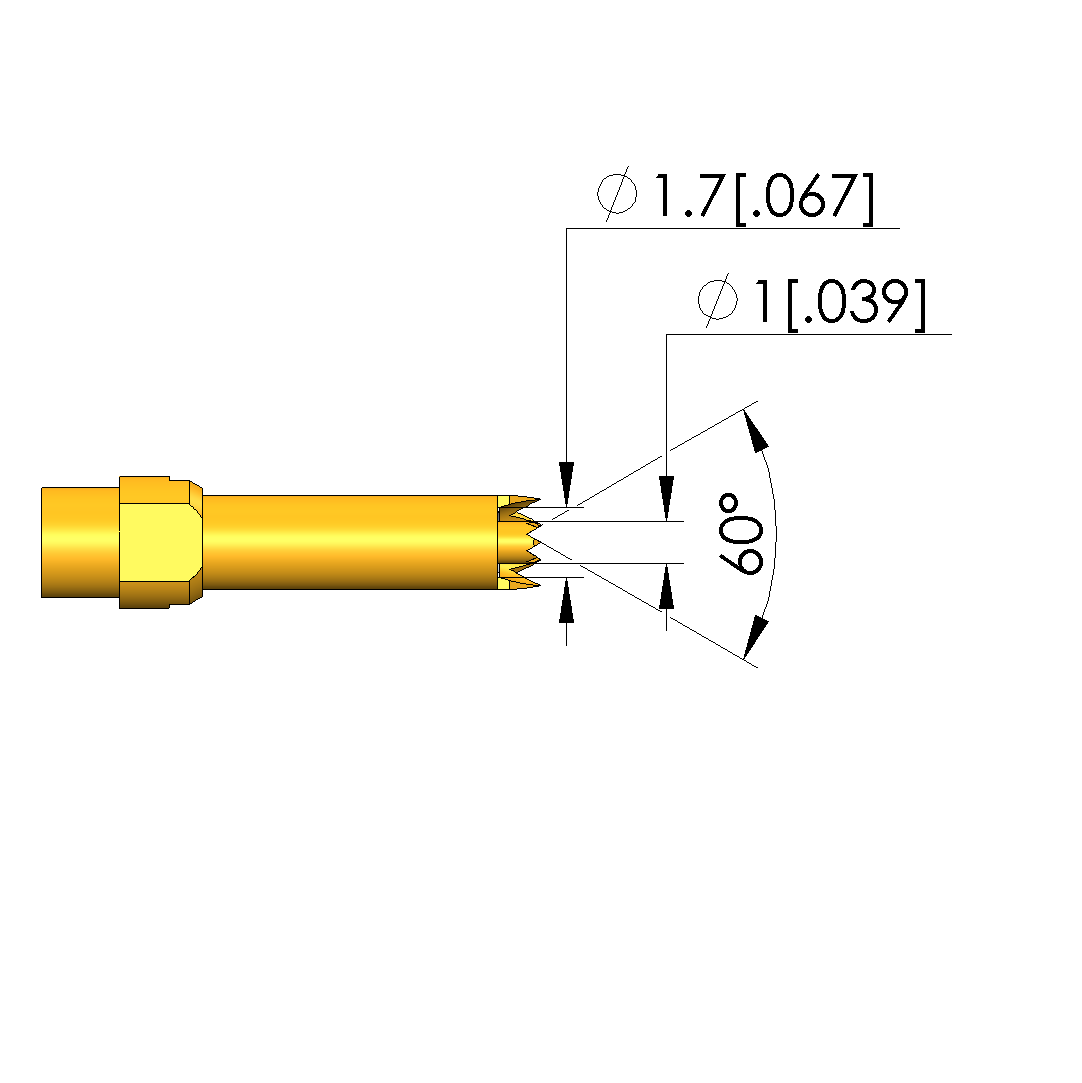 - Inner conductor tip style diameter: 1 mm [.039 in]
