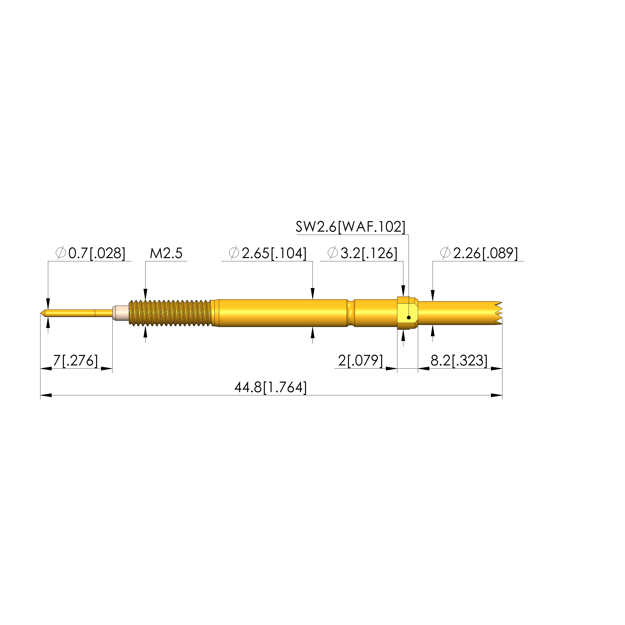 • Outer conductor tip style diameter: 2.26 mm [.088 in]