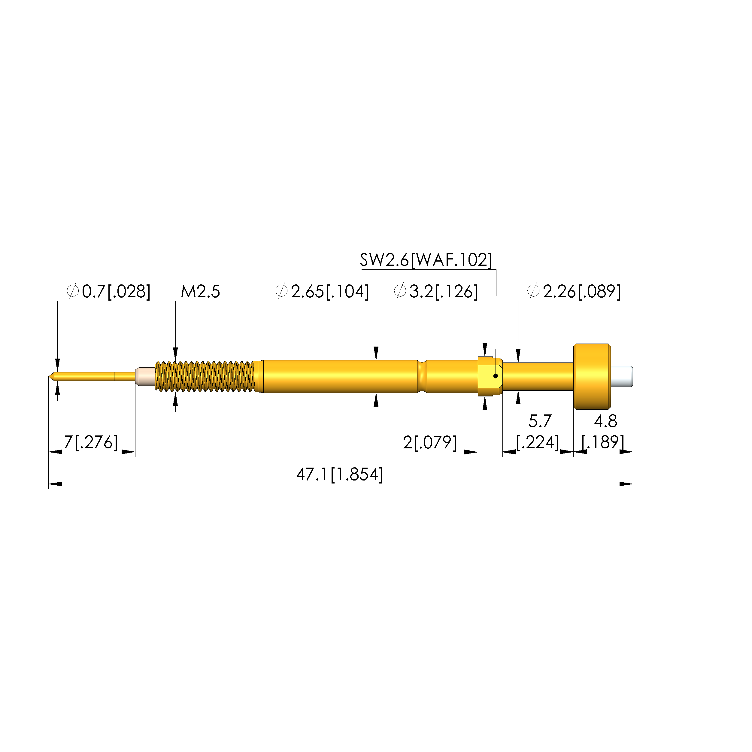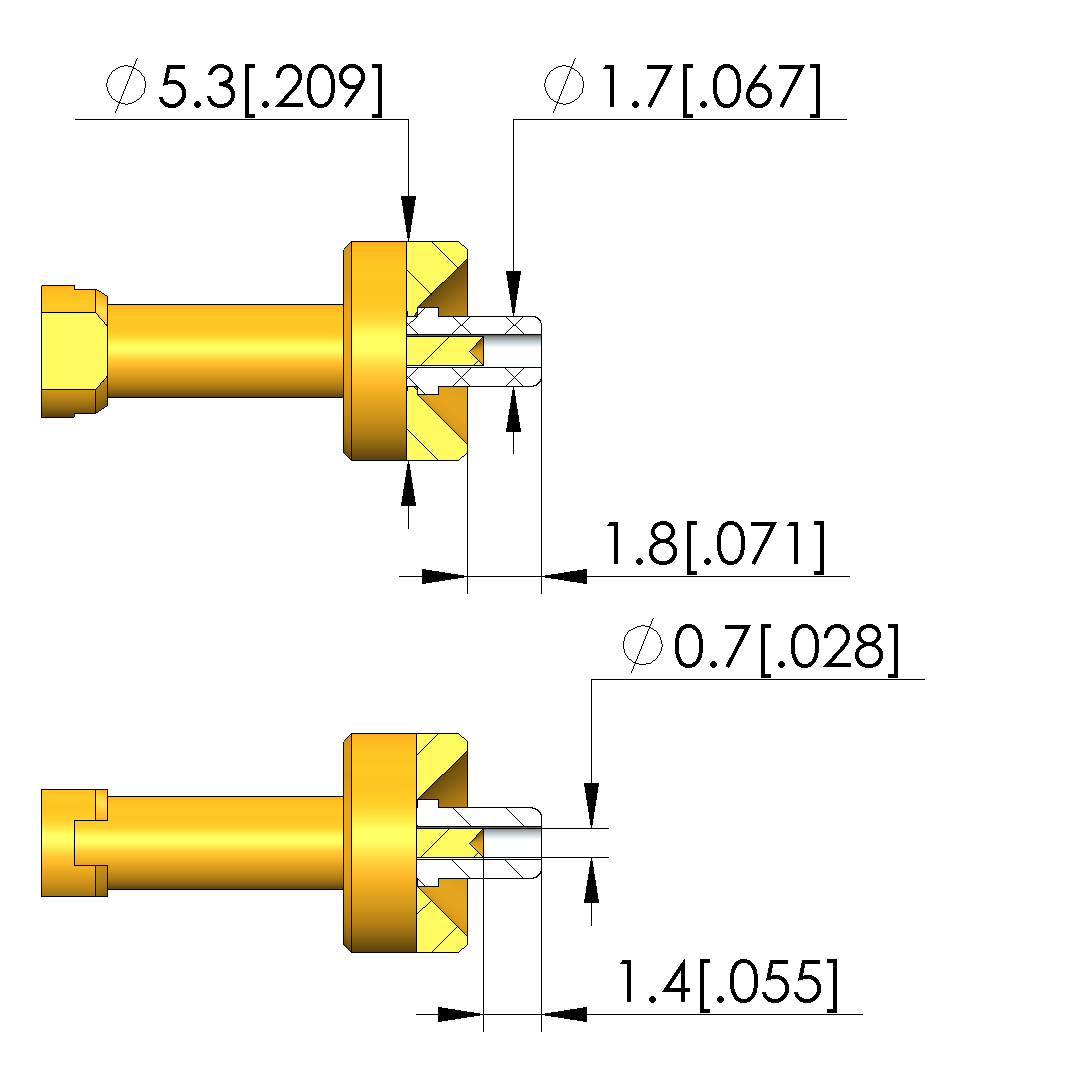 • Outer conductor tip style diameter: 5.3 mm [.208 in]