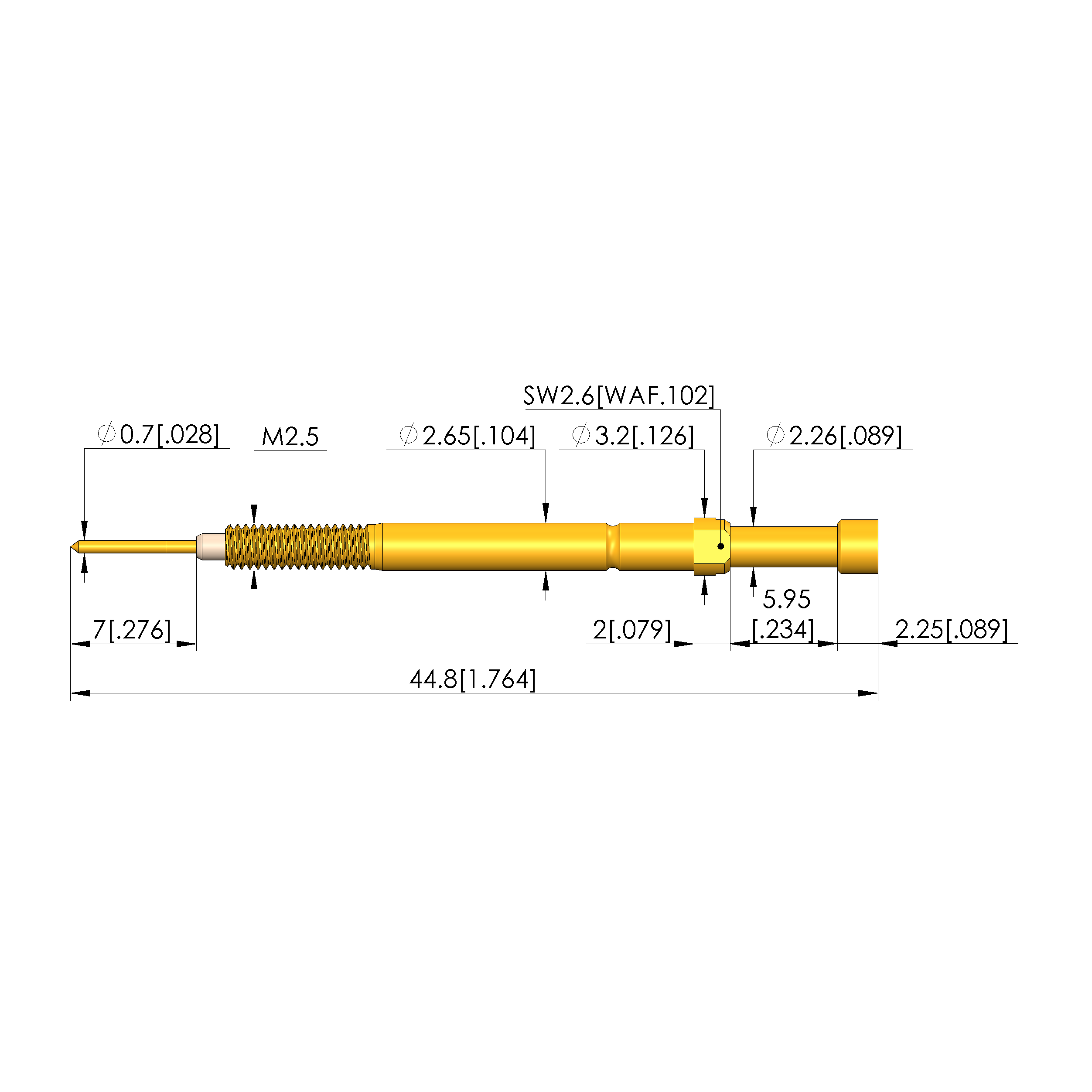 • Spring force of each inner conductor at working stroke: 1 N [3.59 ozf]