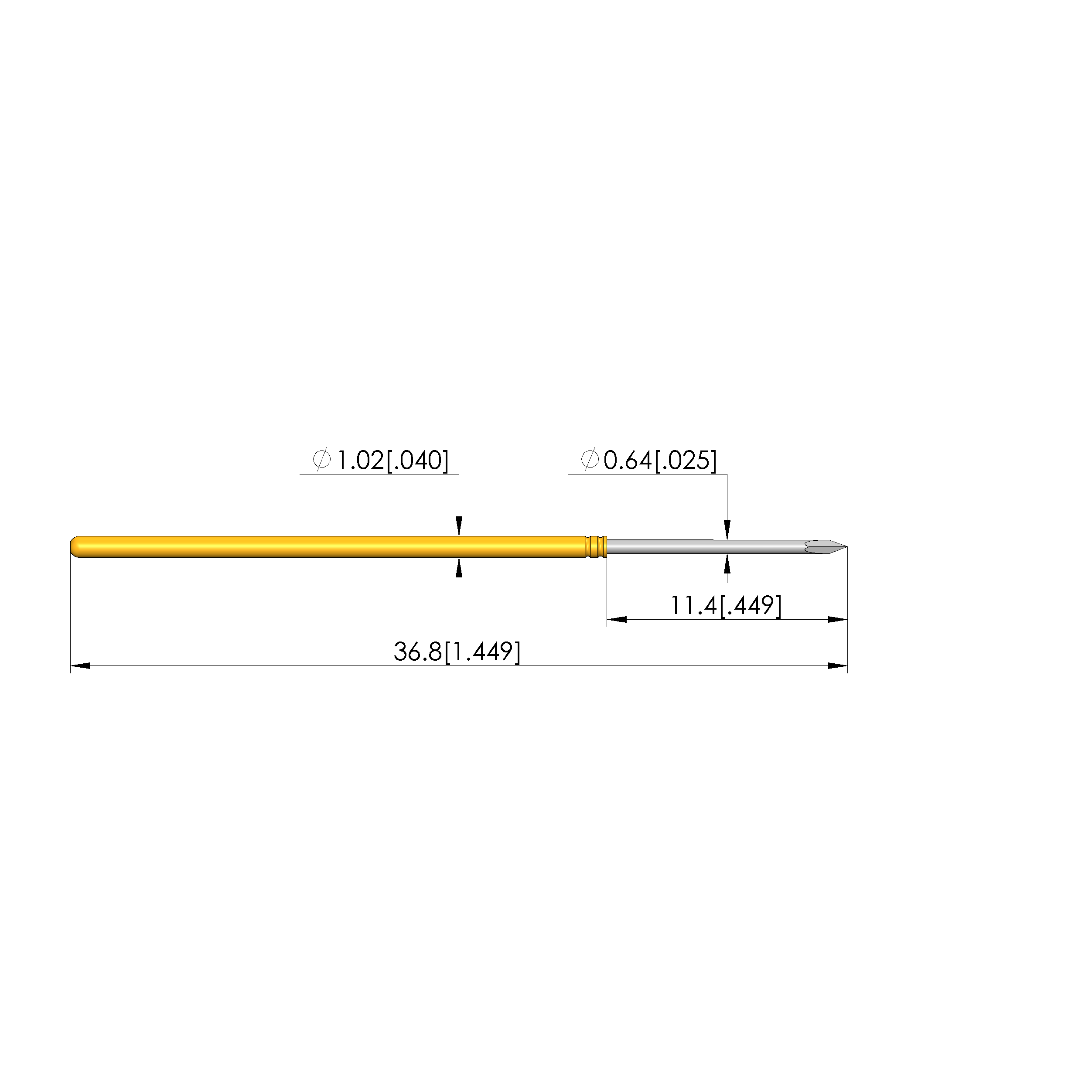 - Tip diameter: 0.64 mm [.025 in]