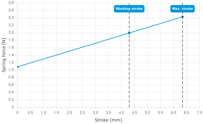 | Spring force at working stroke: | 2 N [7.19 ozf] |