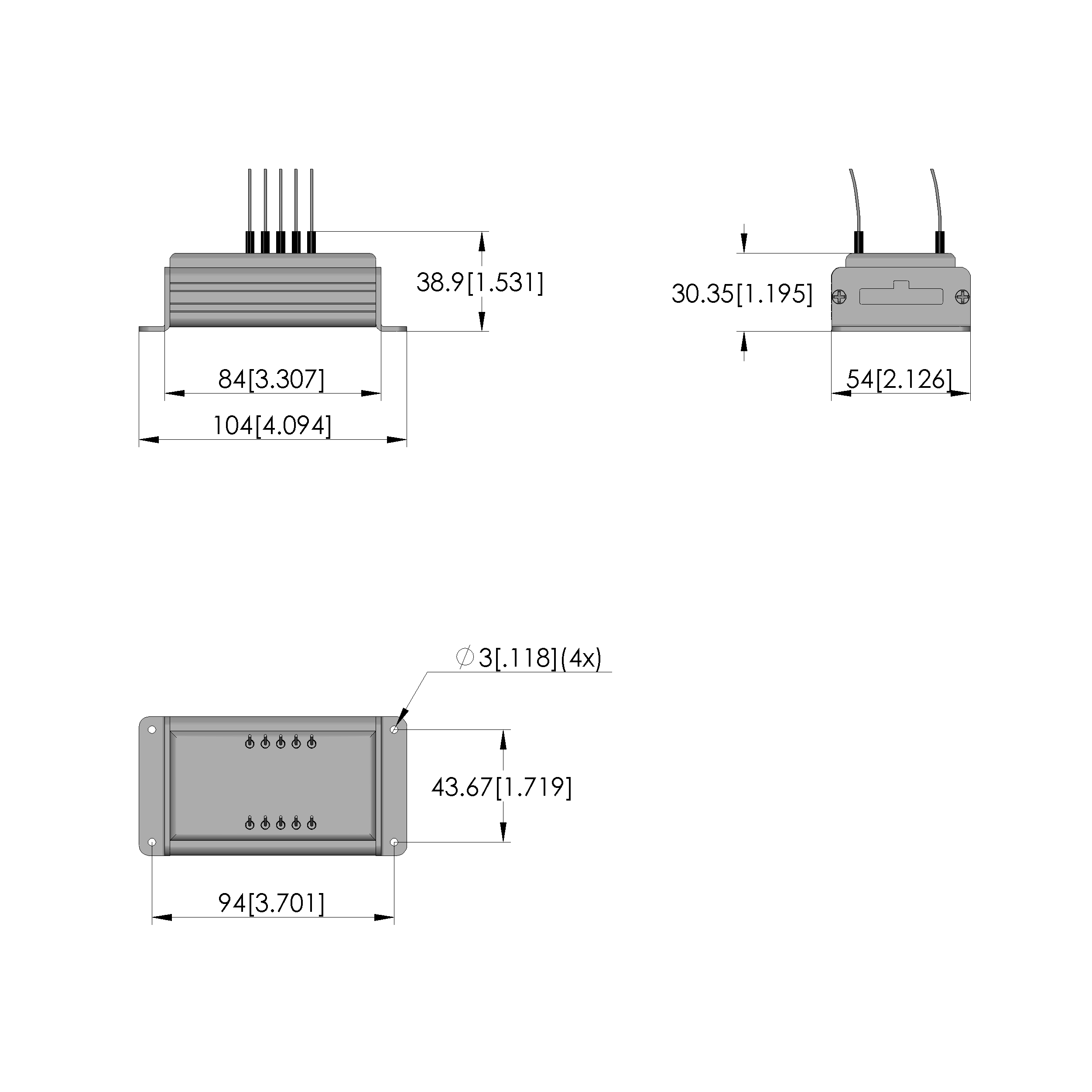 - Outer dimensionS (WxDxH): 104 x 54 x 39 mm [4.09 x 2.12 x 1.53 in]