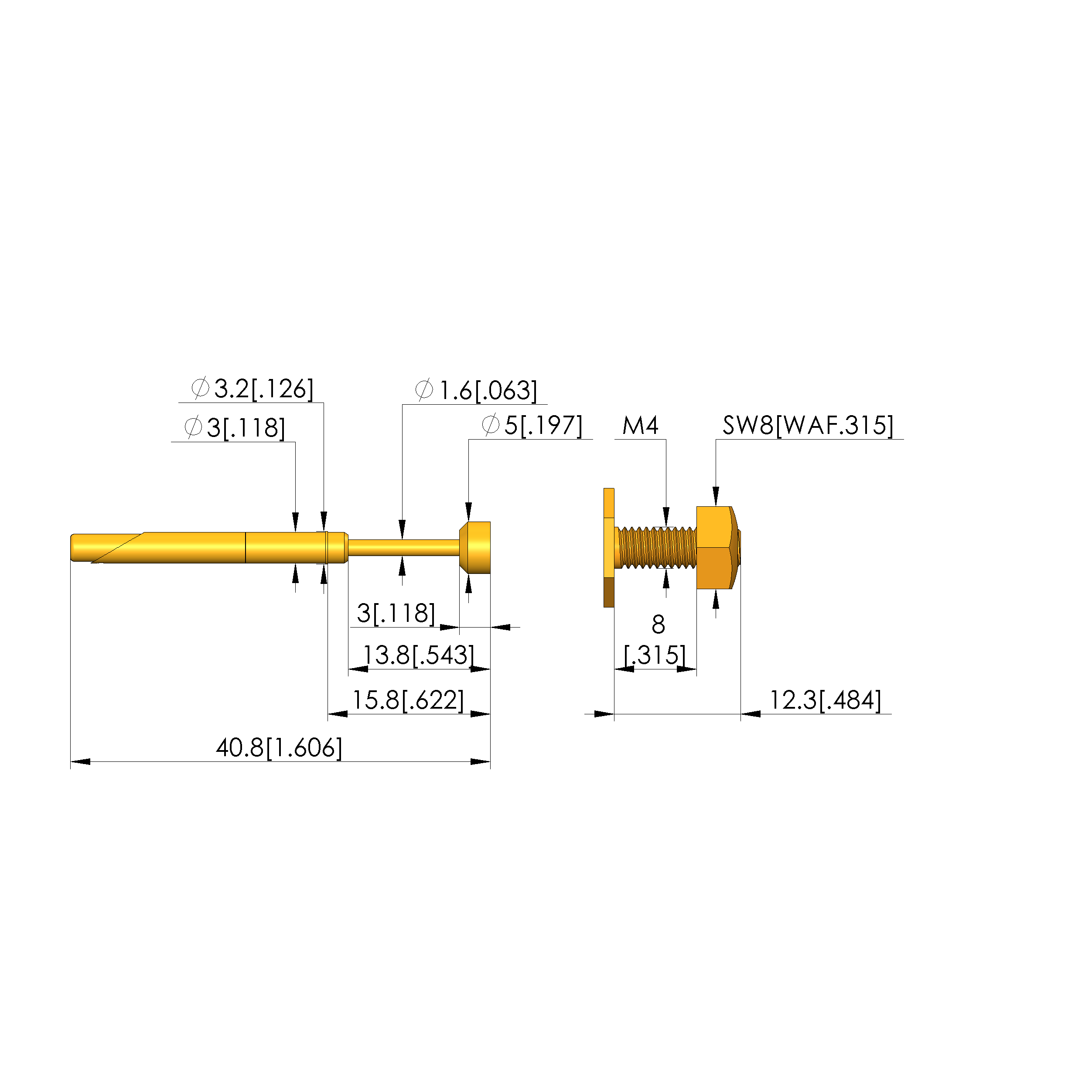 - Diameter: 3 mm [.118 in]