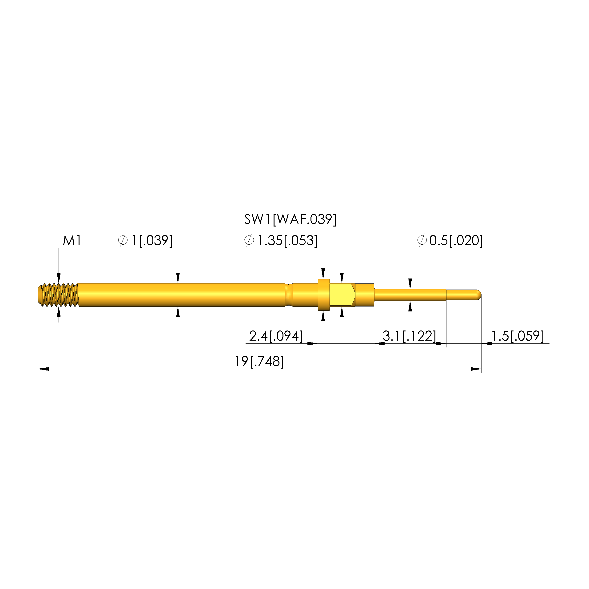 • Spring force at working stroke: 1.5 N [5.39 ozf]