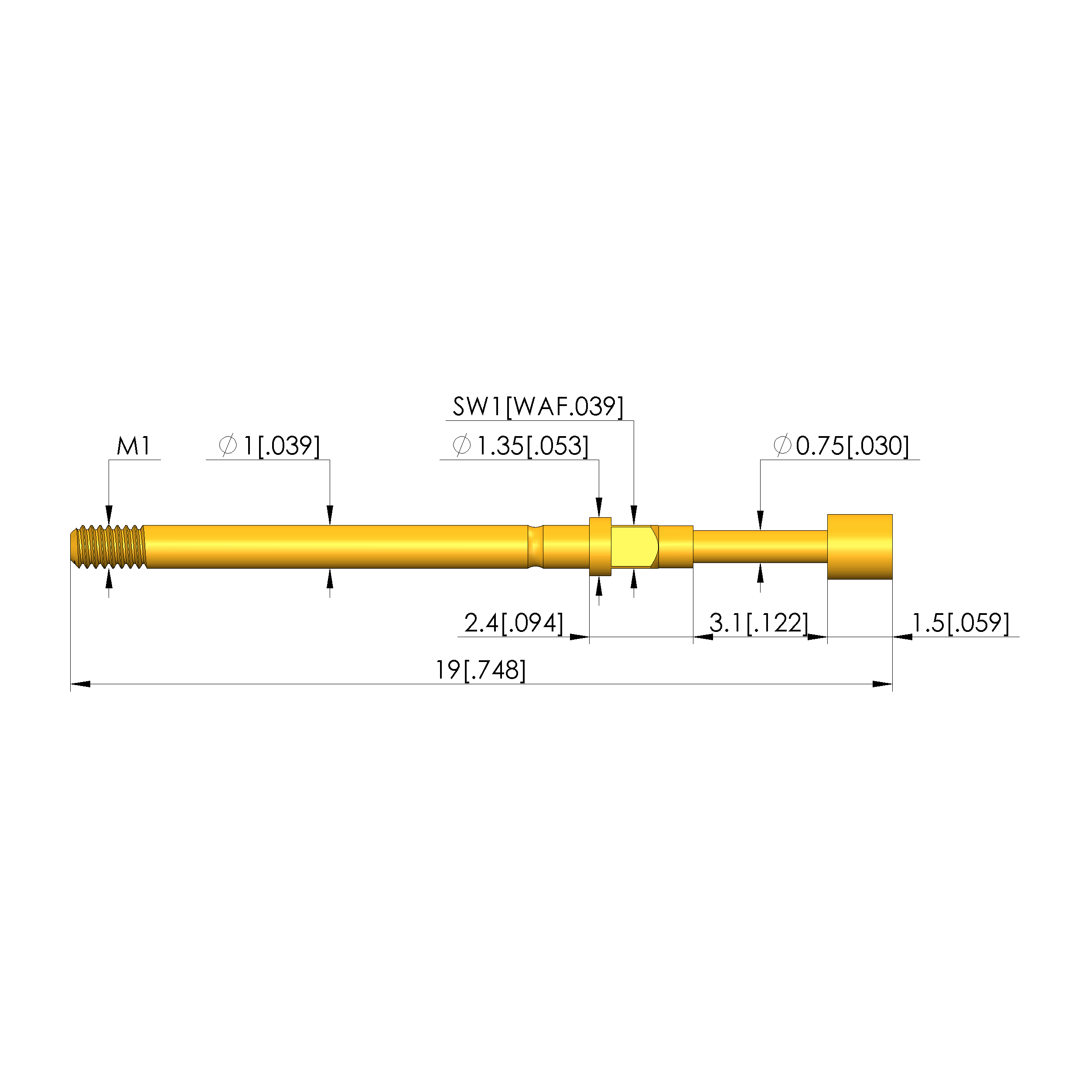 • Total length: 19 mm [.748 in]