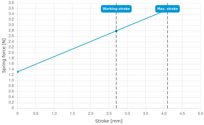 • Spring force at working stroke: 2.8 N [10 ozf]