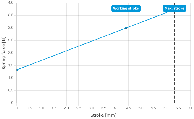 • Spring force at working stroke: 3 N [10.7 ozf]