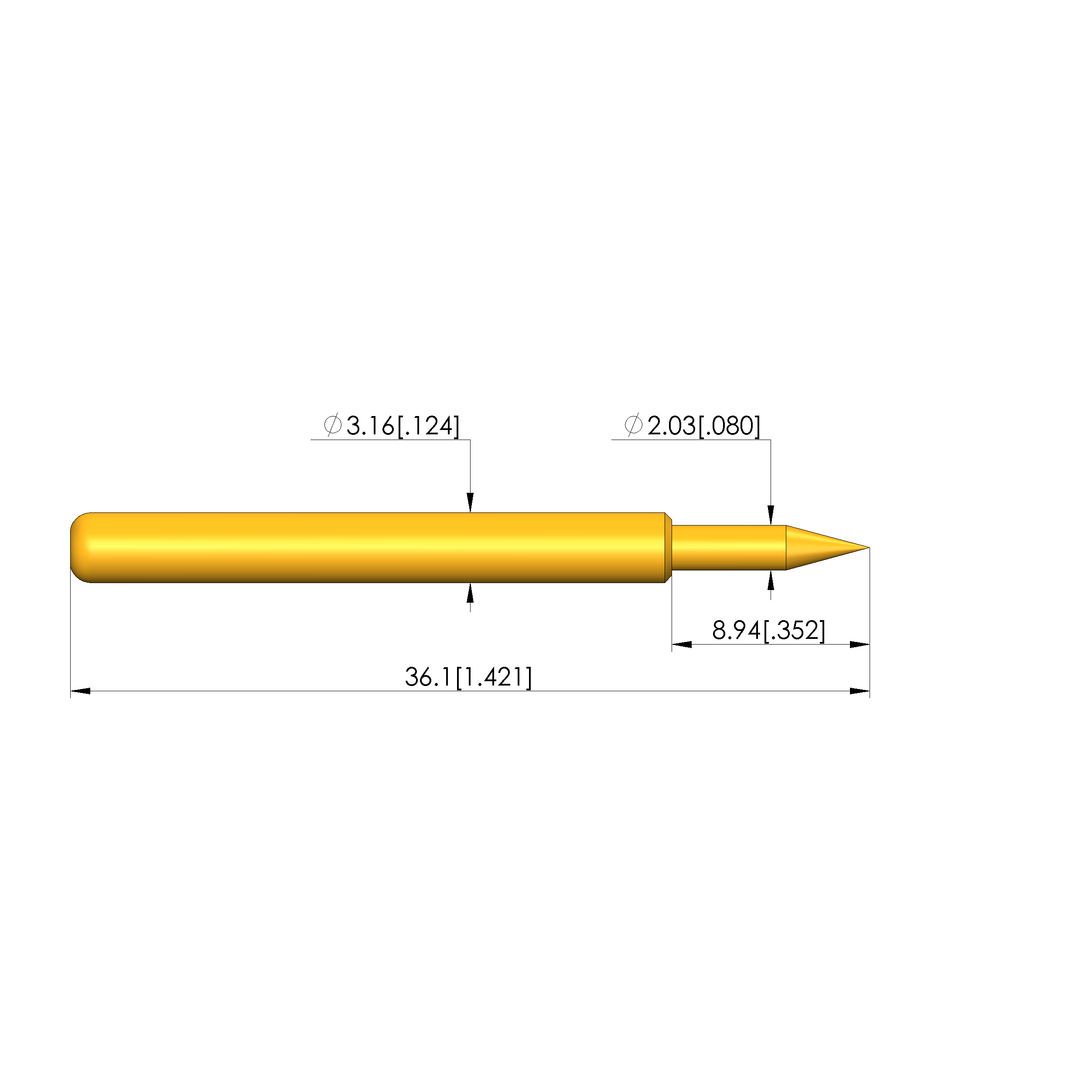 • Tip diameter: 2.03 mm [.079 in]