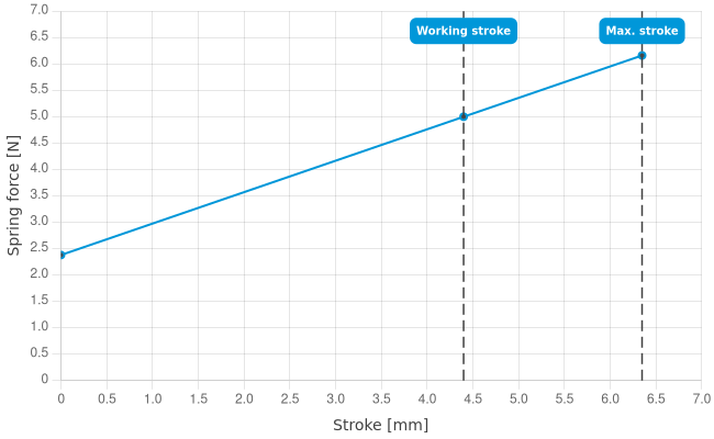 • Spring force at working stroke: 5 N [17.9 ozf]