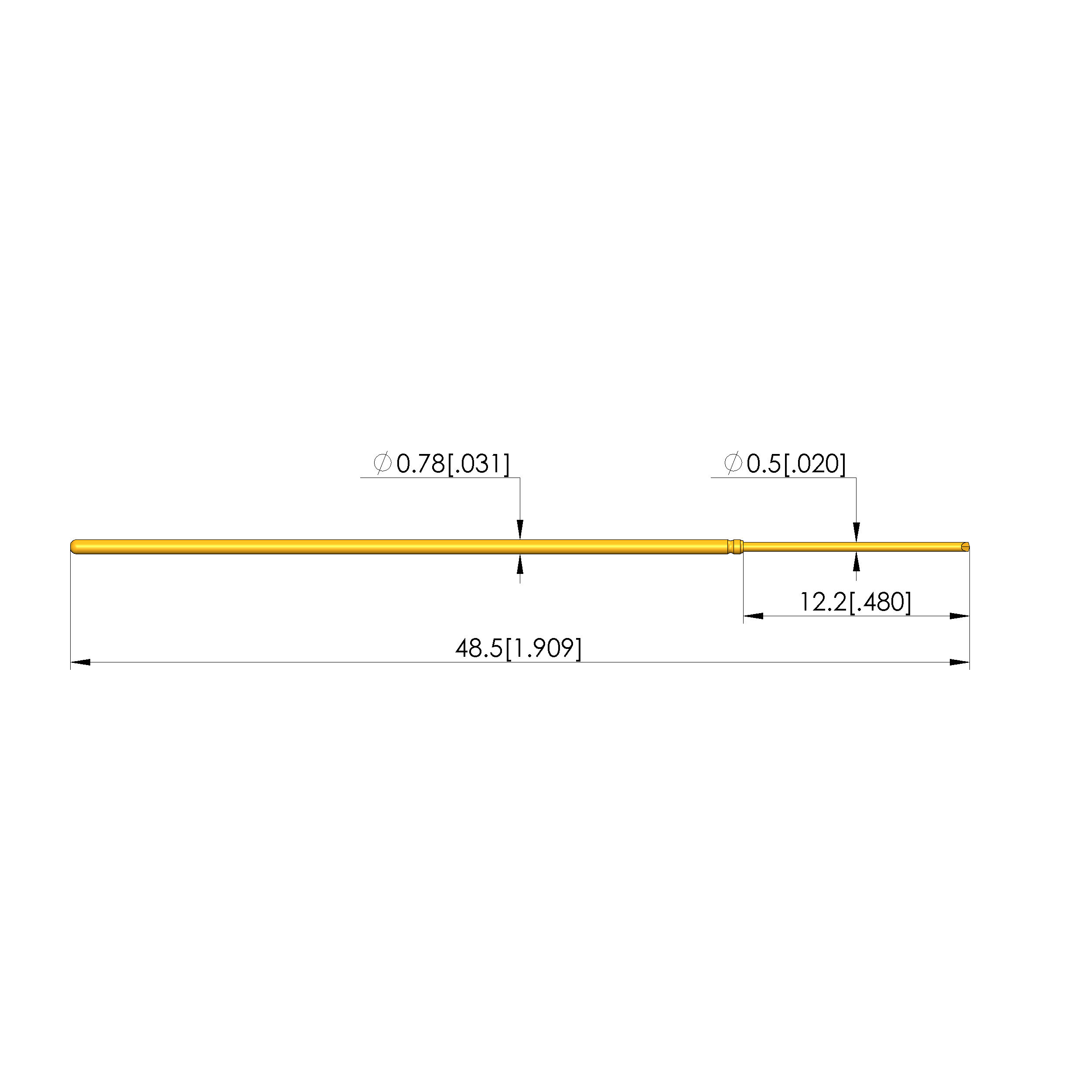 • Barrel diameter: 0.78 mm [.03 in]