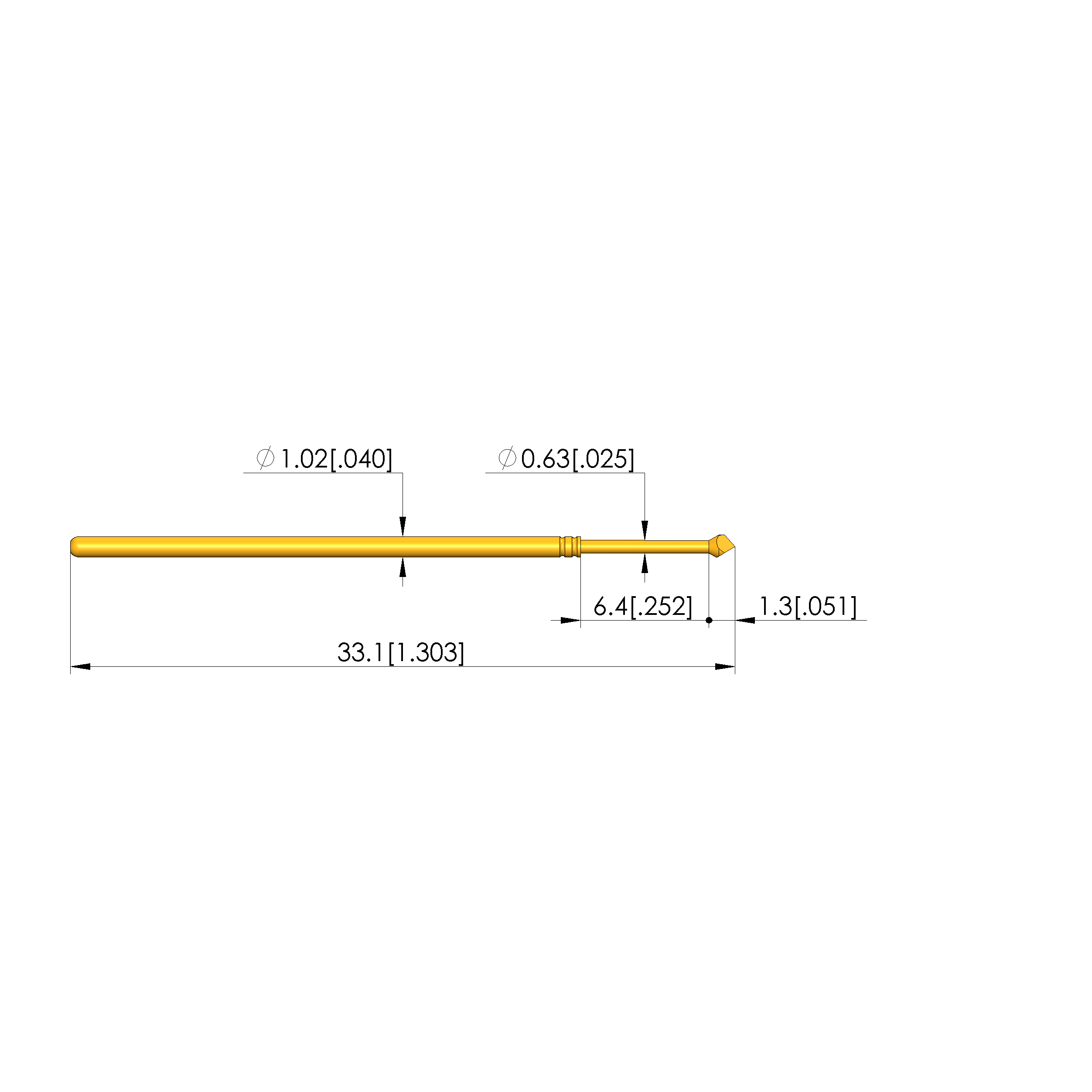 - Barrel diameter: 1.02 mm [.04 in]
