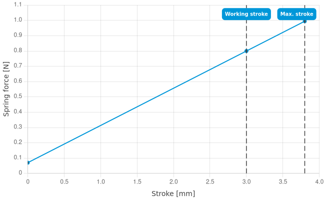 - Spring force at working stroke: 0.8 N [2.87 ozf]