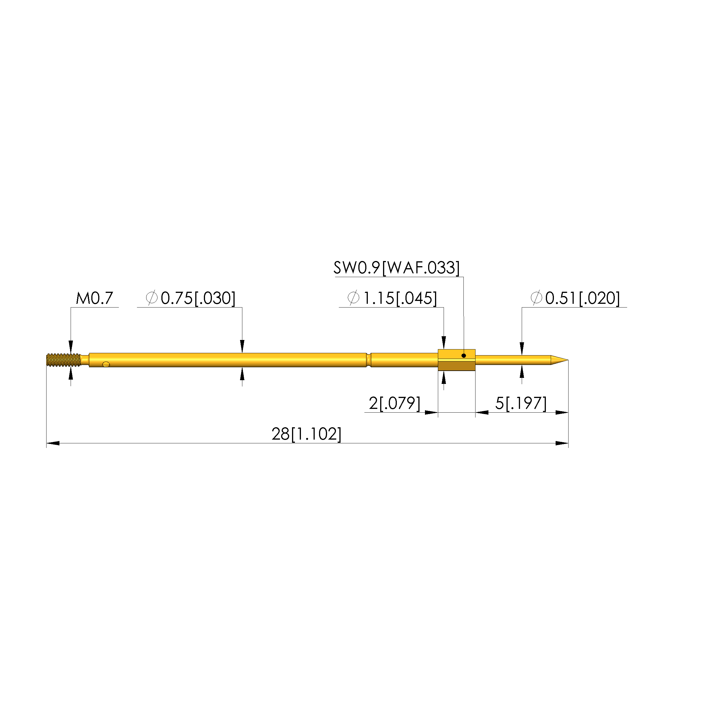 • Spring force at working stroke: 0.5 N [1.79 ozf]