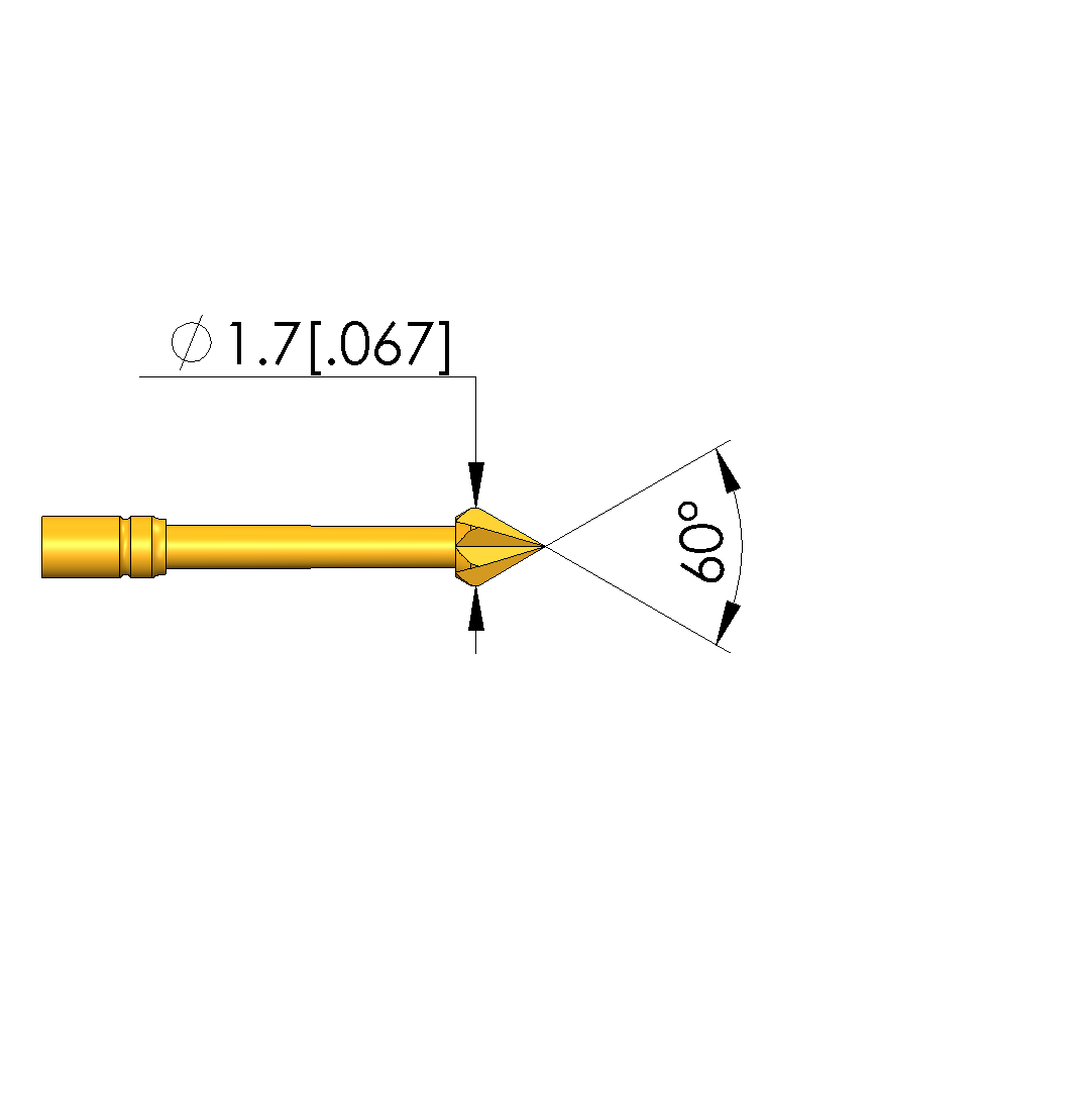 - Tip diameter: 1.7 mm [.066 in]