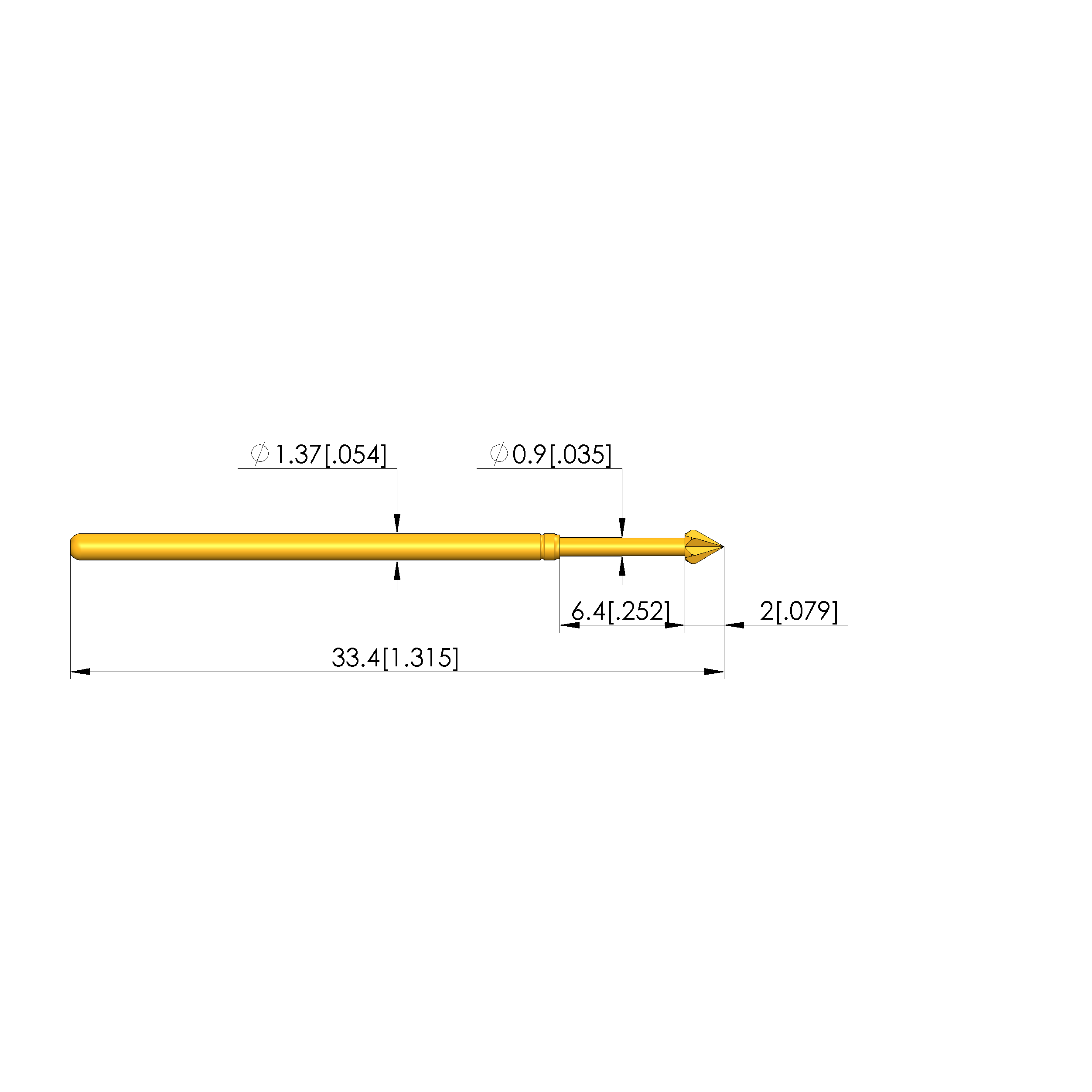 - Barrel diameter: 1.37 mm [.053 in]