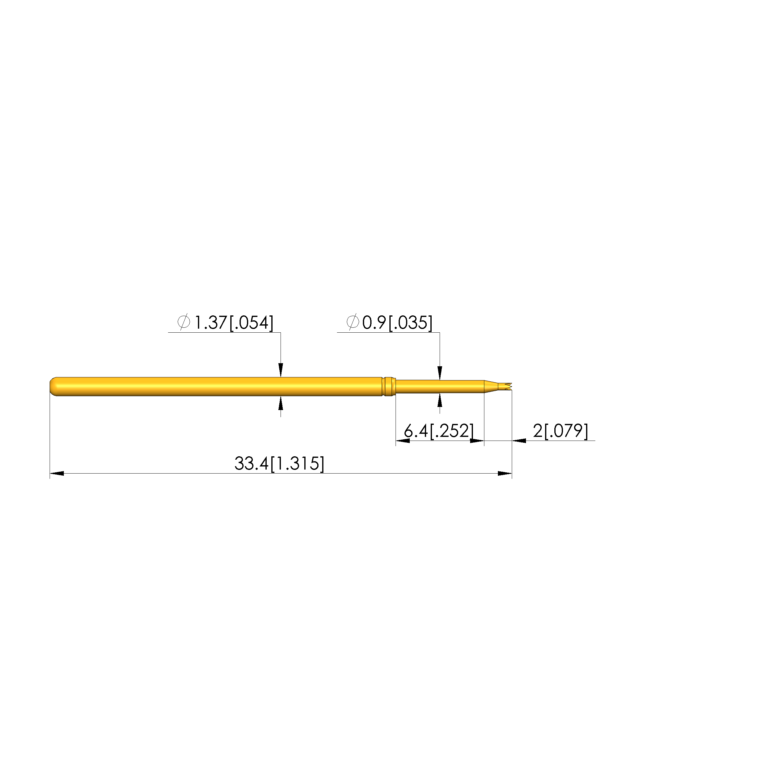 • Barrel diameter: 1.37 mm [.053 in]