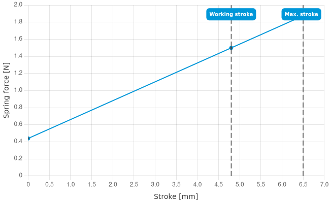 - Spring force at working stroke: 1.5 N [5.39 ozf]
