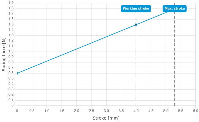 - Spring force at working stroke: 1.5 N [5.39 ozf]