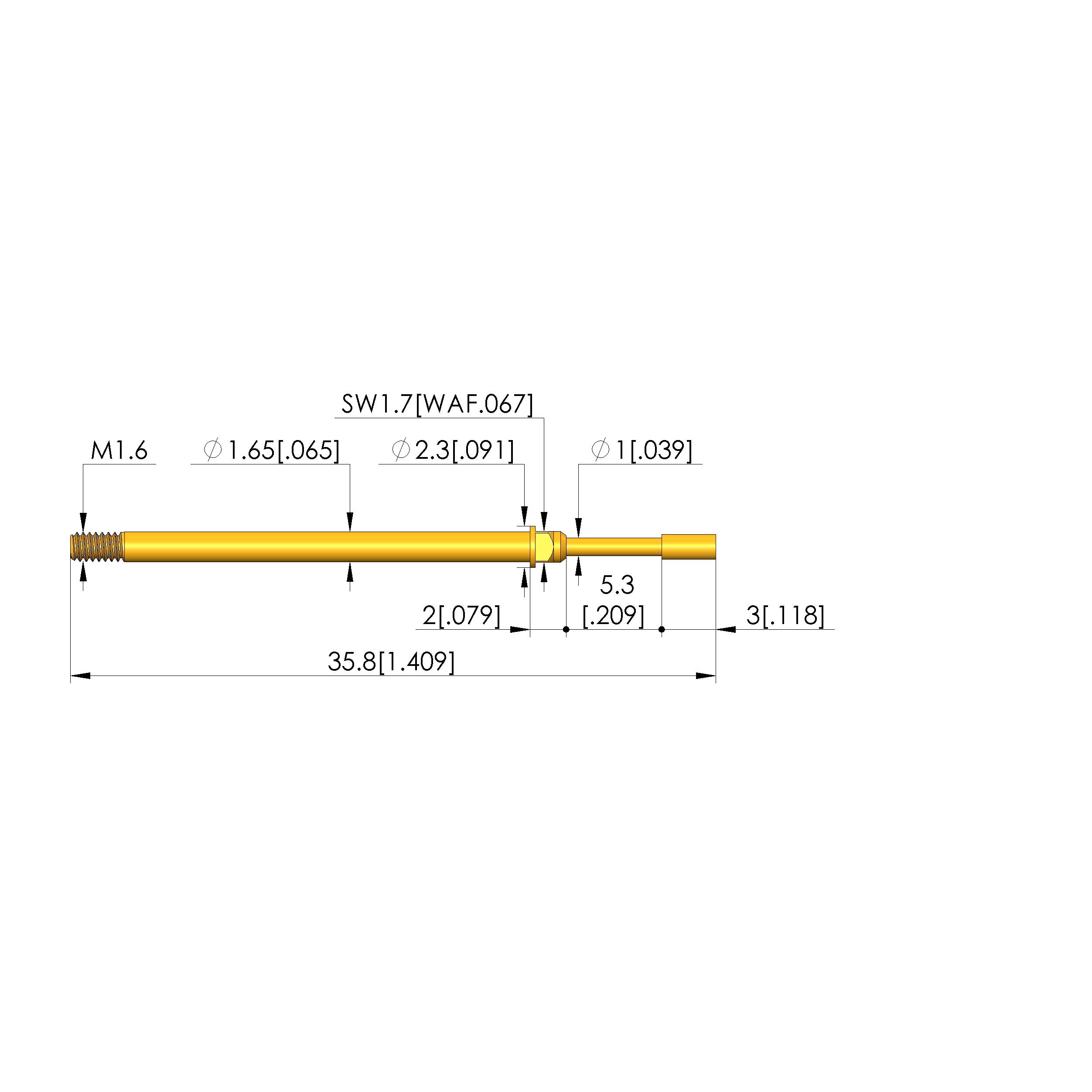 • Total length: 35.8 mm [1.4 in]