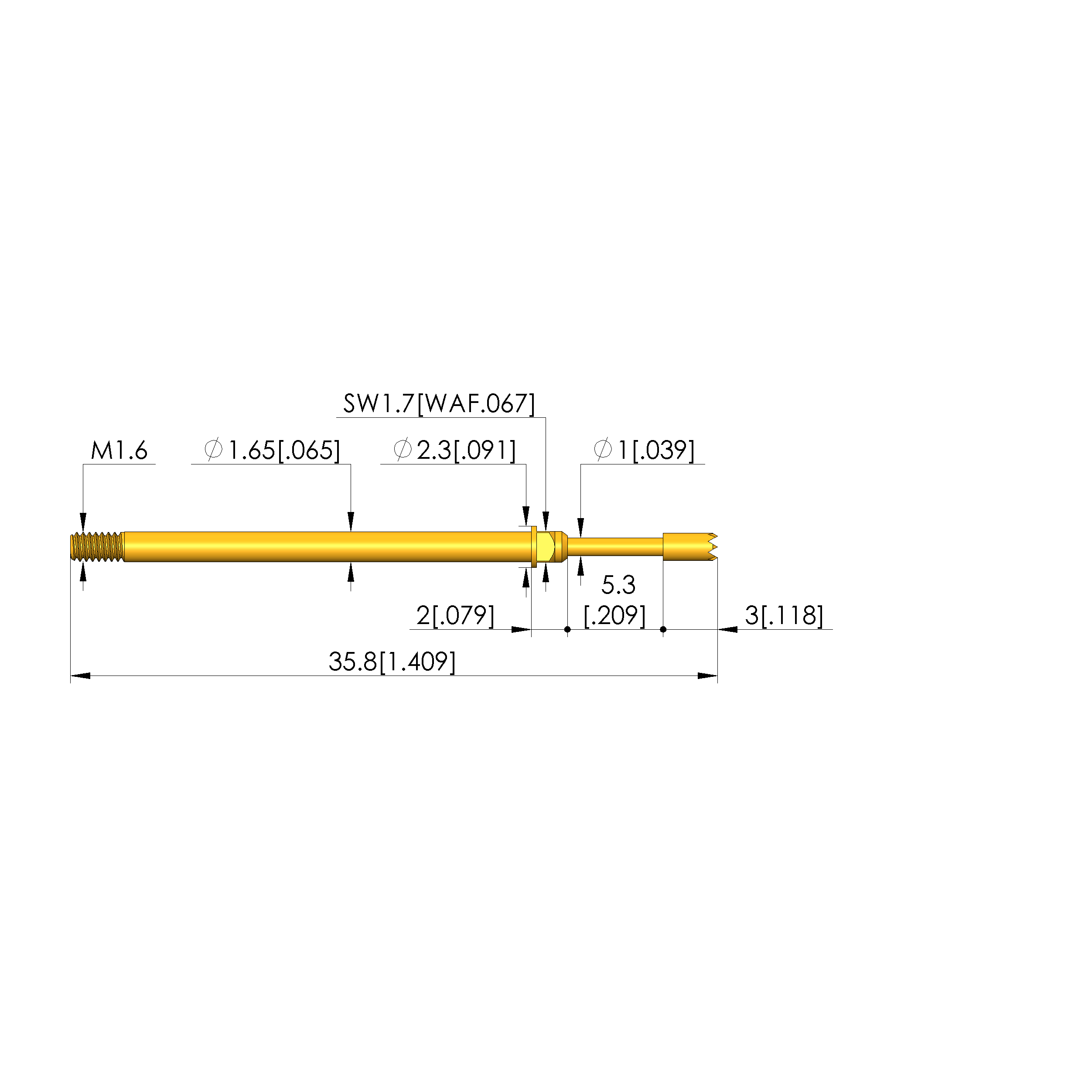 - Barrel diameter: 1.65 mm [.064 in]