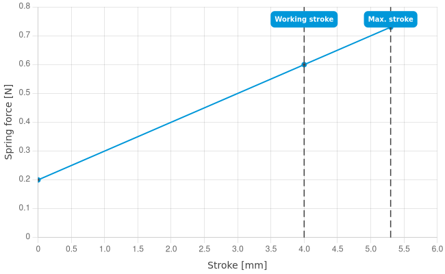 | Spring force at working stroke: | 0.6 N [2.15 ozf] |