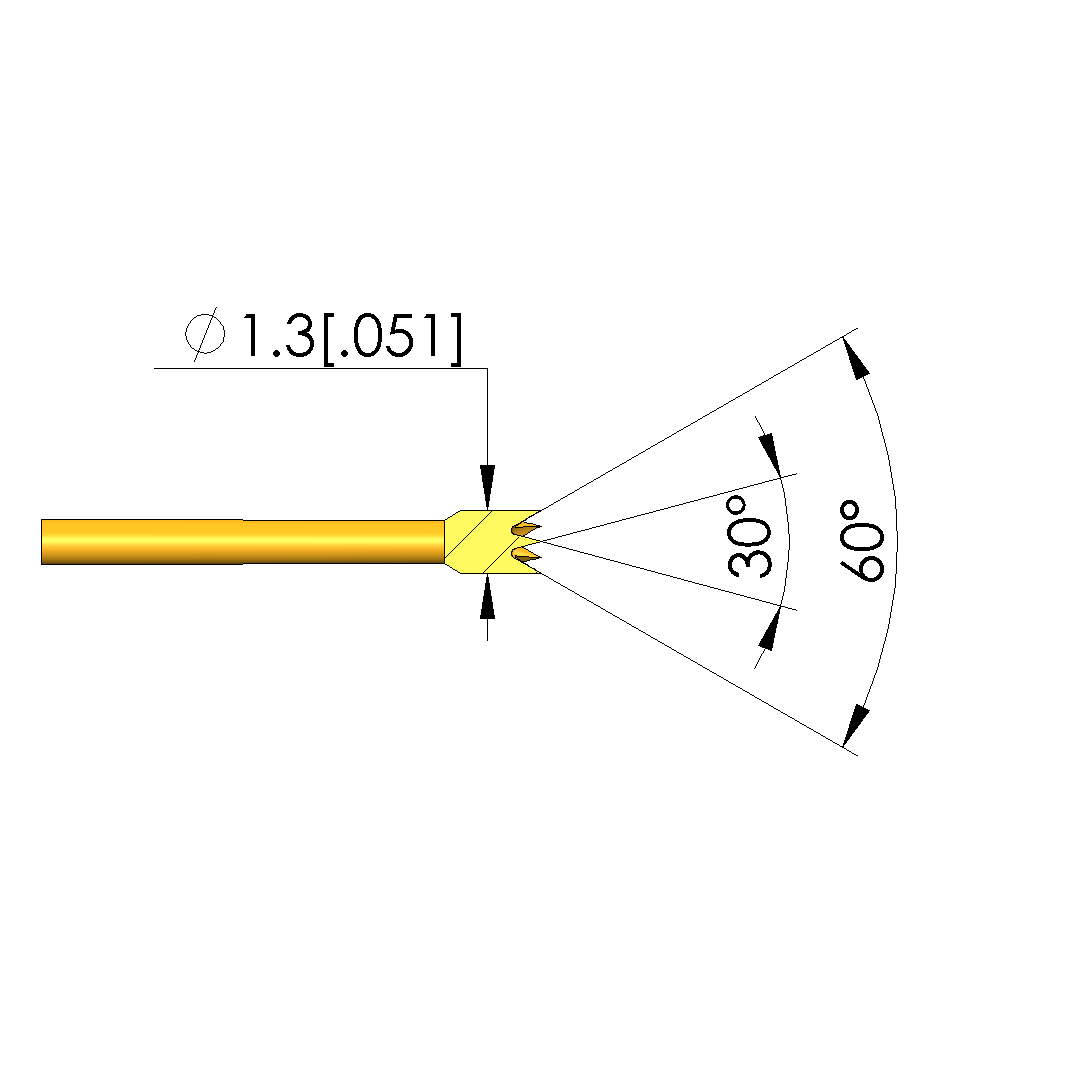 - Tip diameter: 1.3 mm [.051 in]