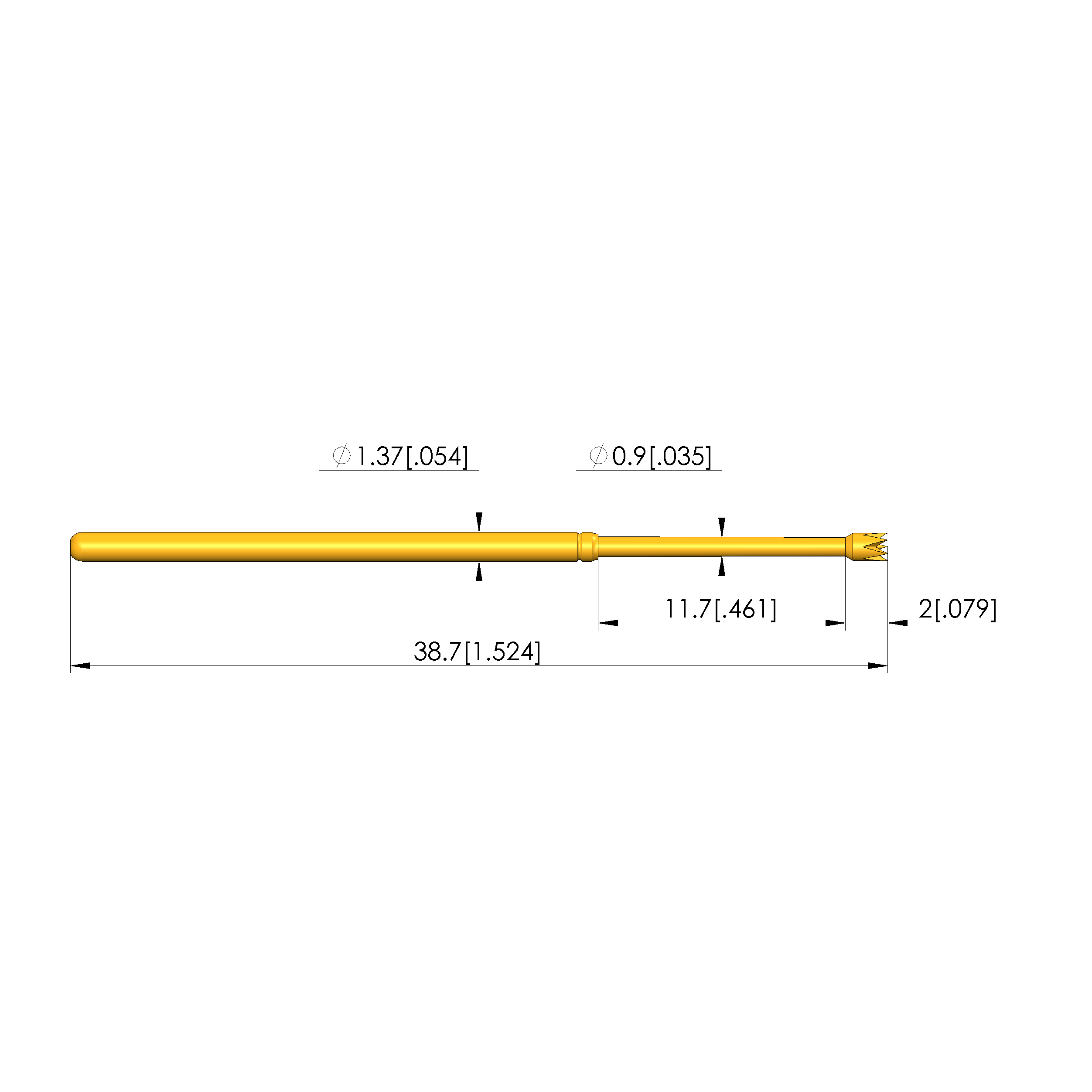 - Barrel diameter: 1.37 mm [.053 in]