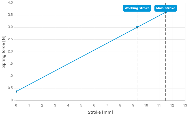 | Spring force at working stroke: | 3 N [10.7 ozf] |