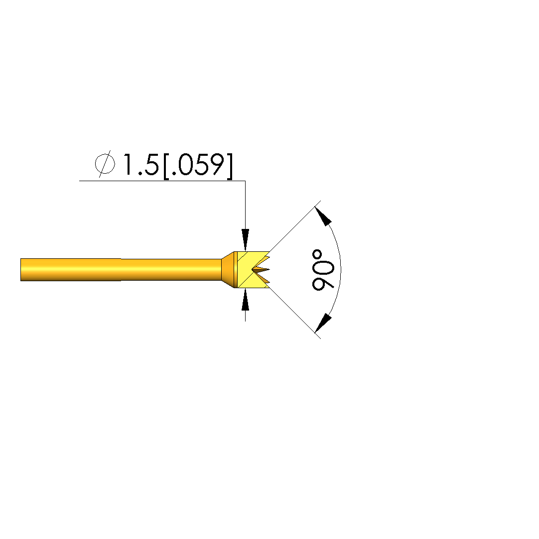 - Tip diameter: 1.5 mm [.059 in]