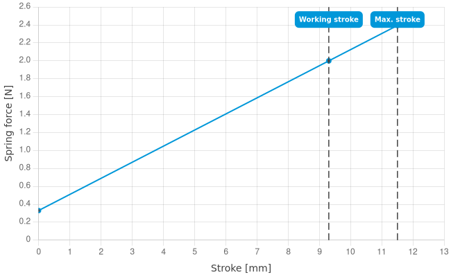 - Spring force at working stroke: 2 N [7.19 ozf]