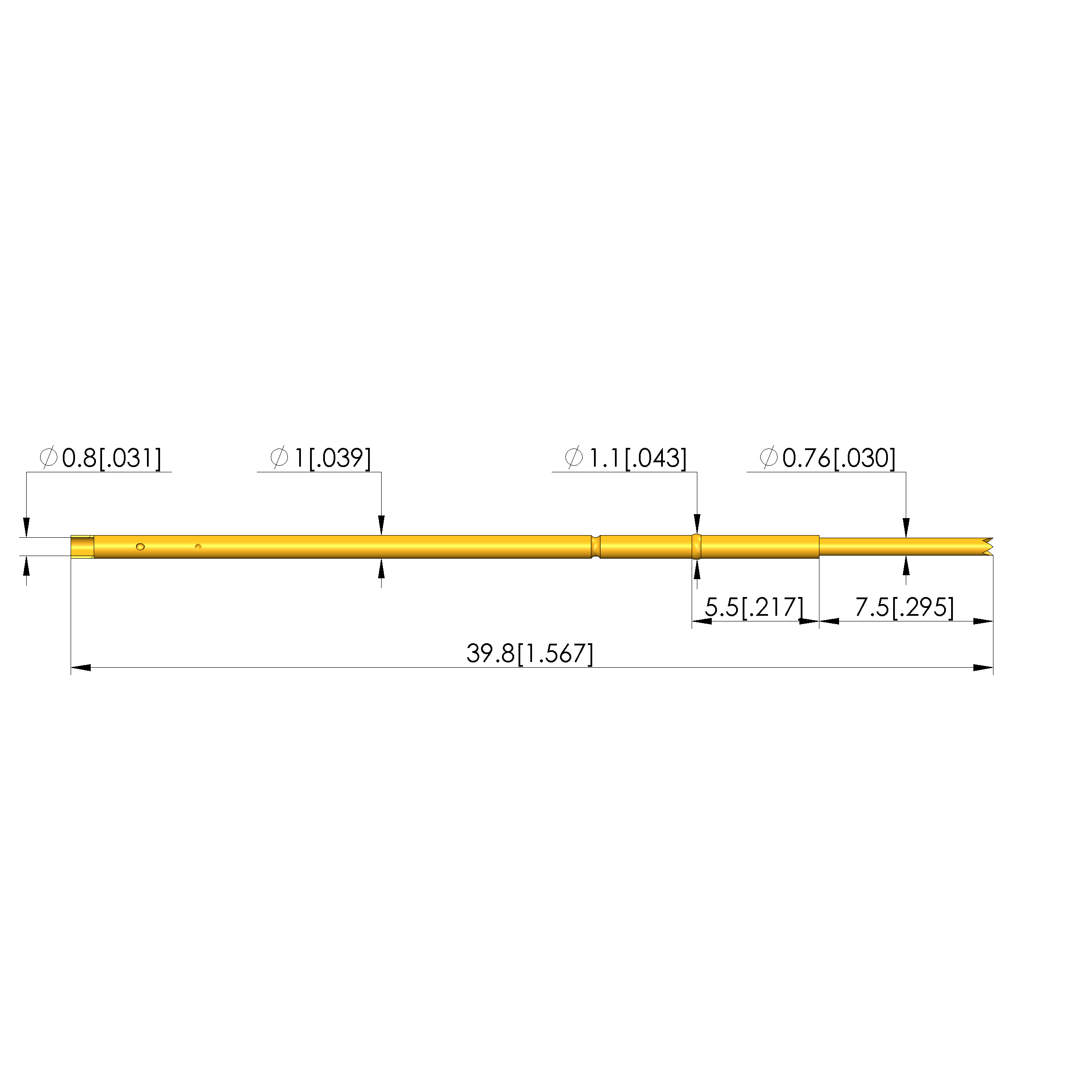 • Barrel diameter: 1 mm [.039 in]