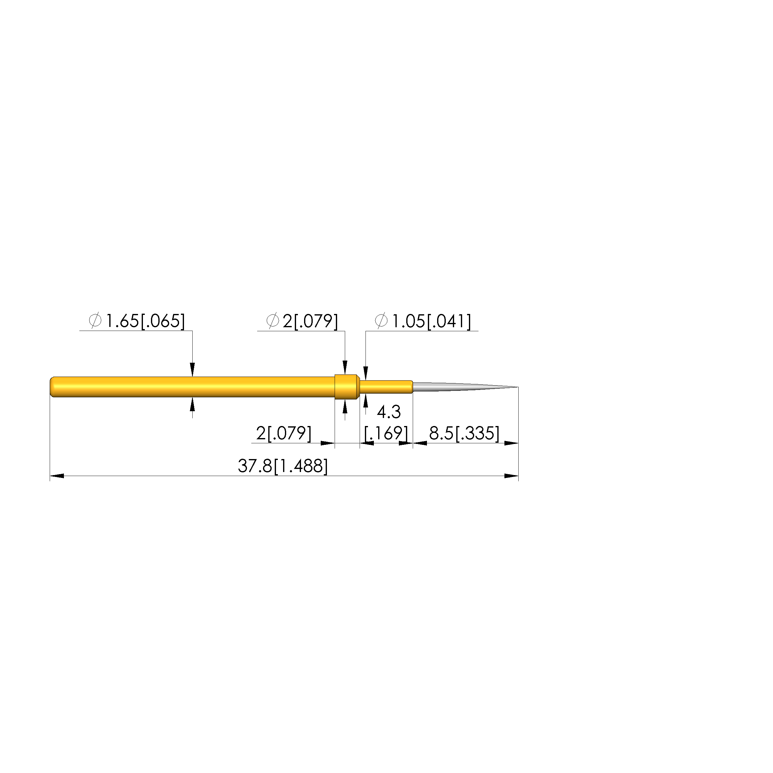 - Barrel diameter: 1.66 mm [.065 in]