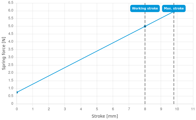 - Spring force at working stroke: 5 N [17.9 ozf]