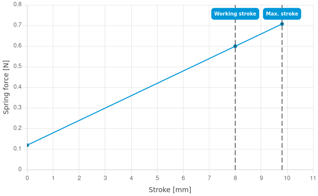 - Spring force at working stroke: 0.6 N [2.15 ozf]