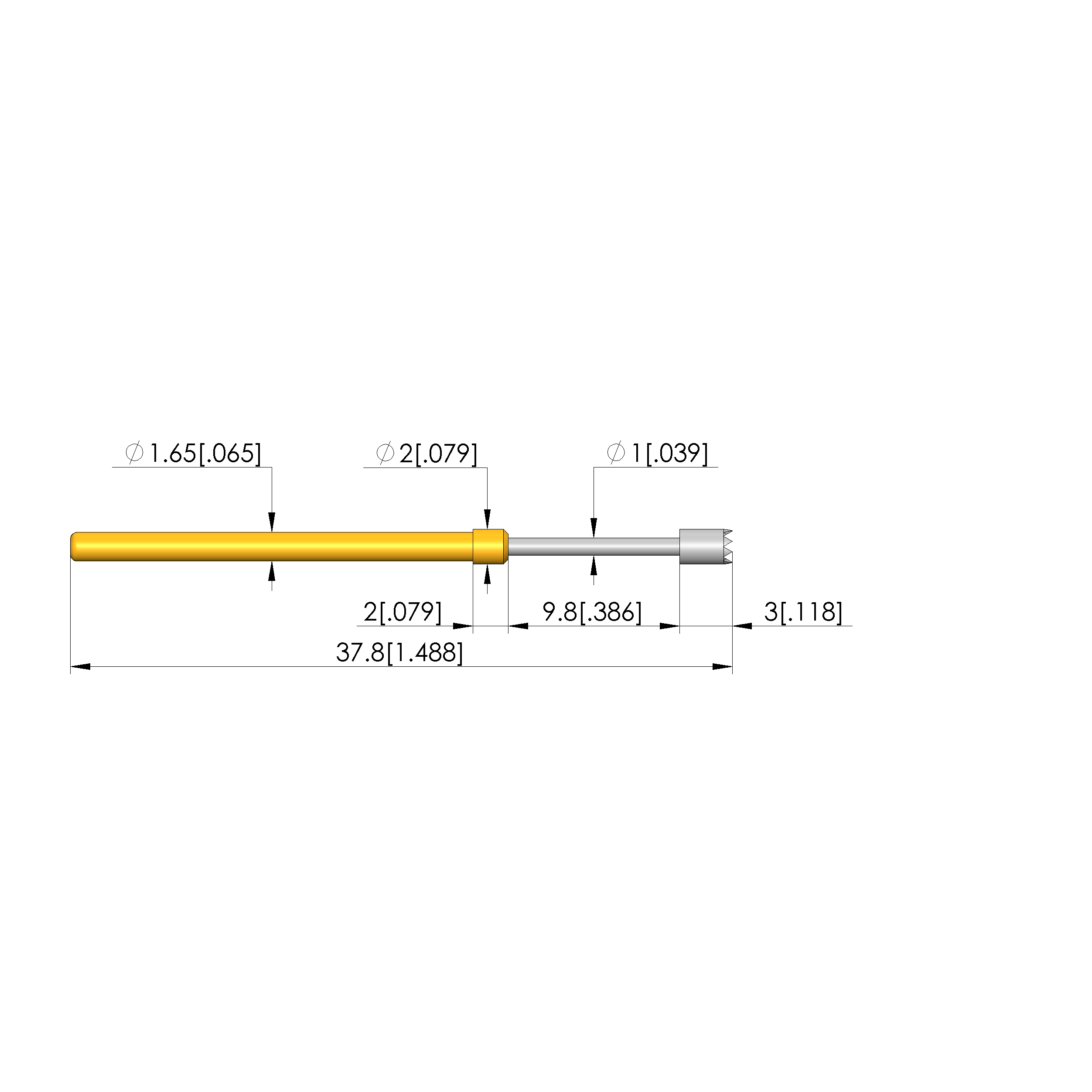 - Barrel diameter: 1.66 mm [.065 in]