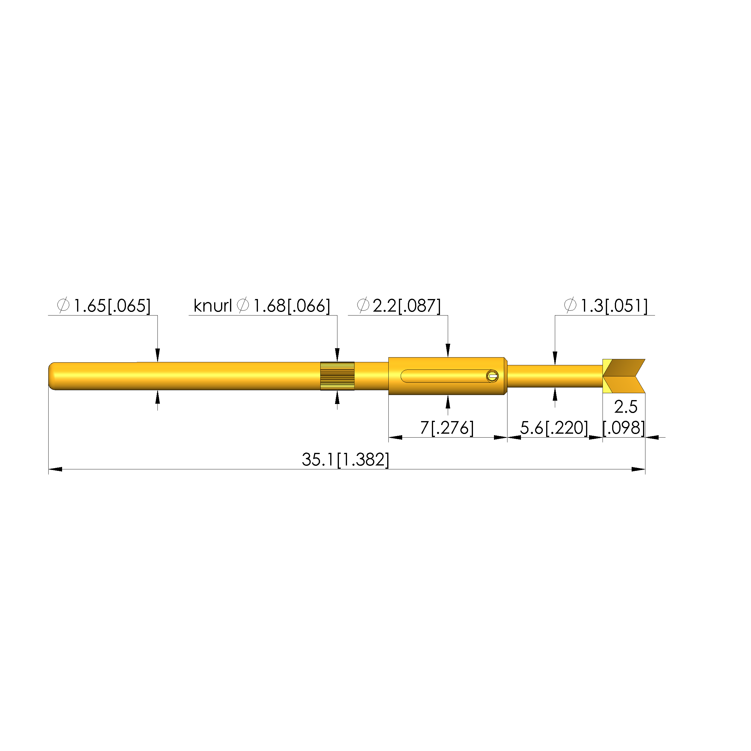 - Barrel diameter: 1.65 mm [.064 in]