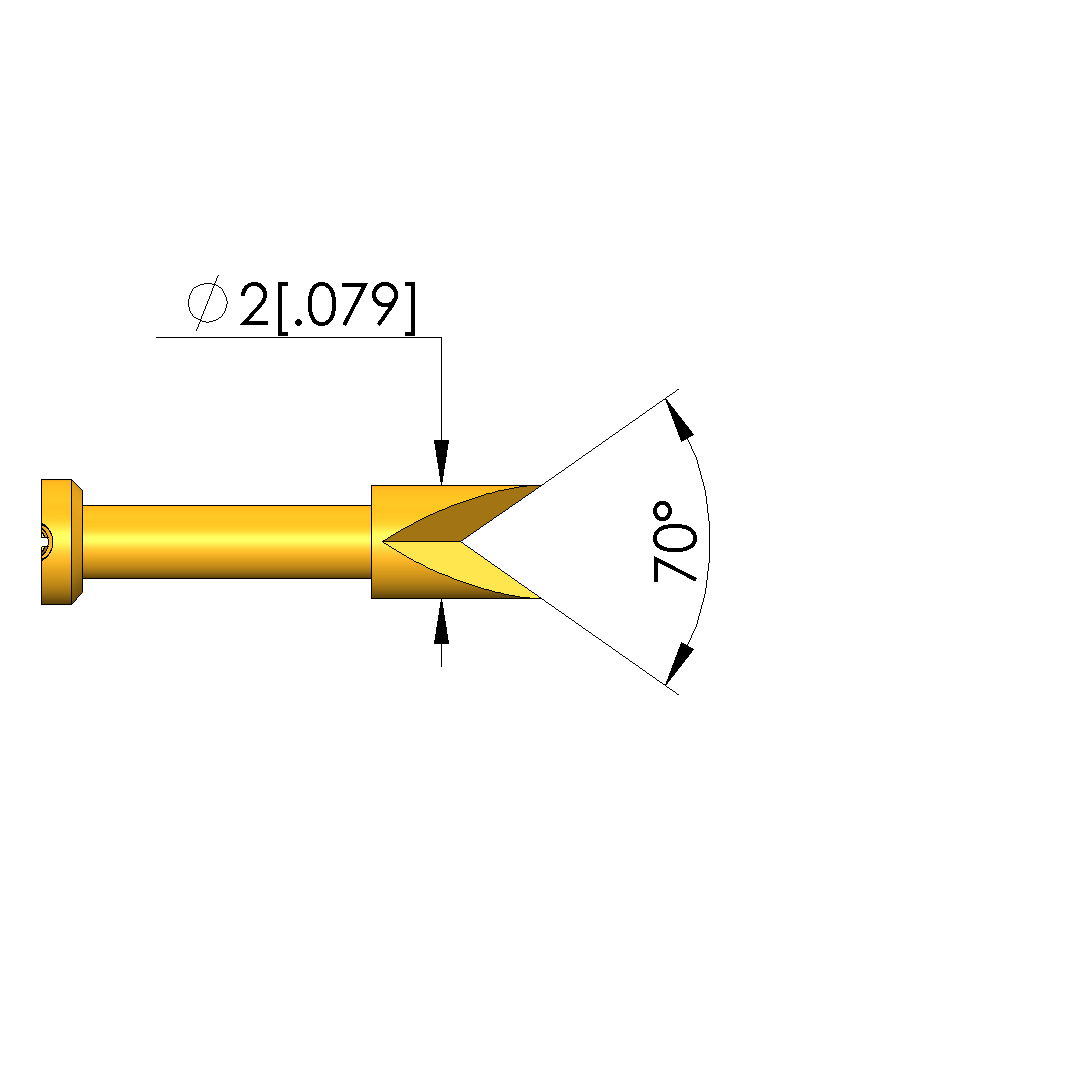 - Tip diameter: 2 mm [.078 in]
