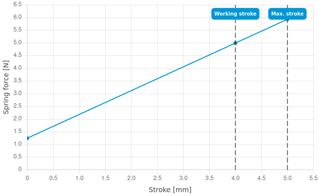- Spring force at working stroke: 5 N [17.9 ozf]