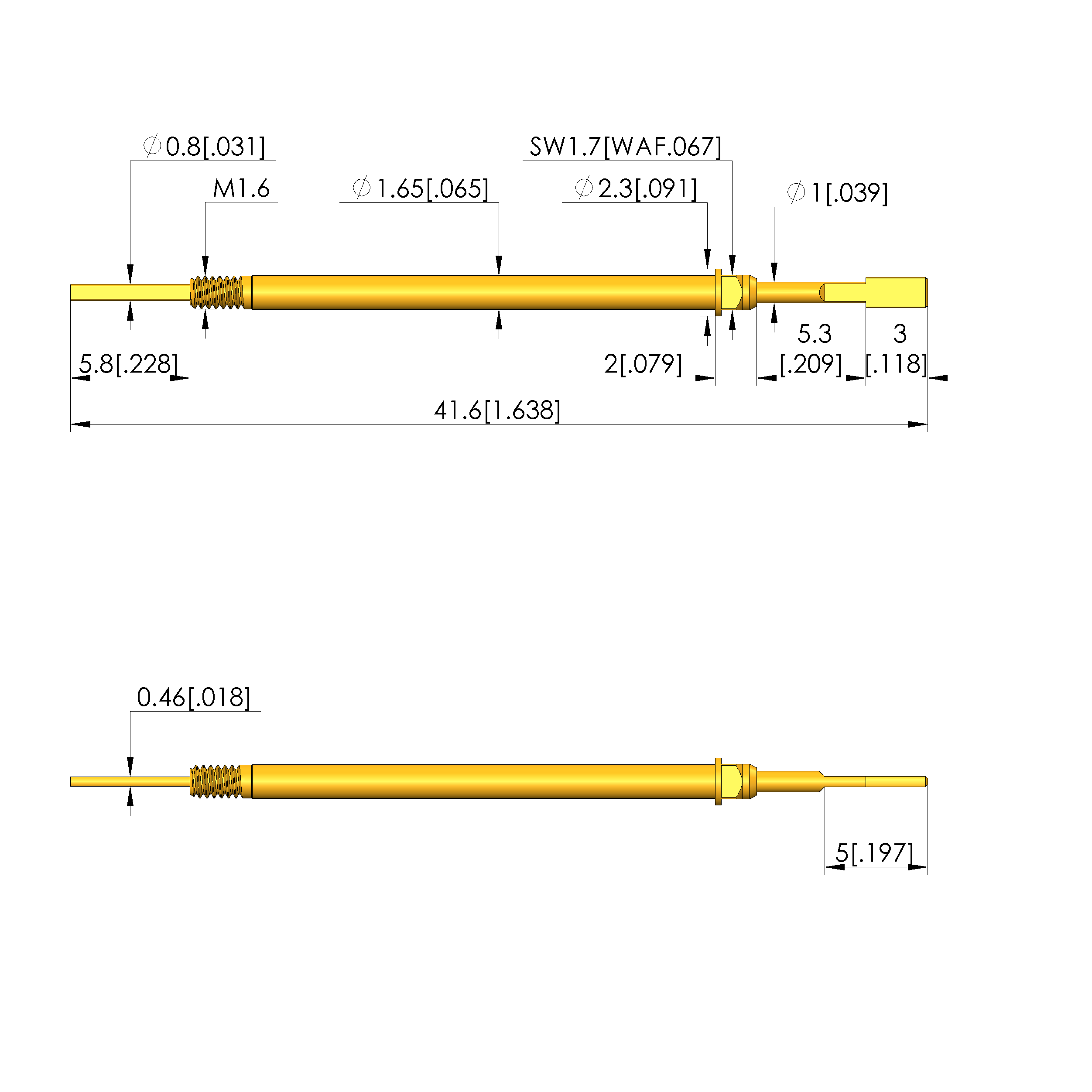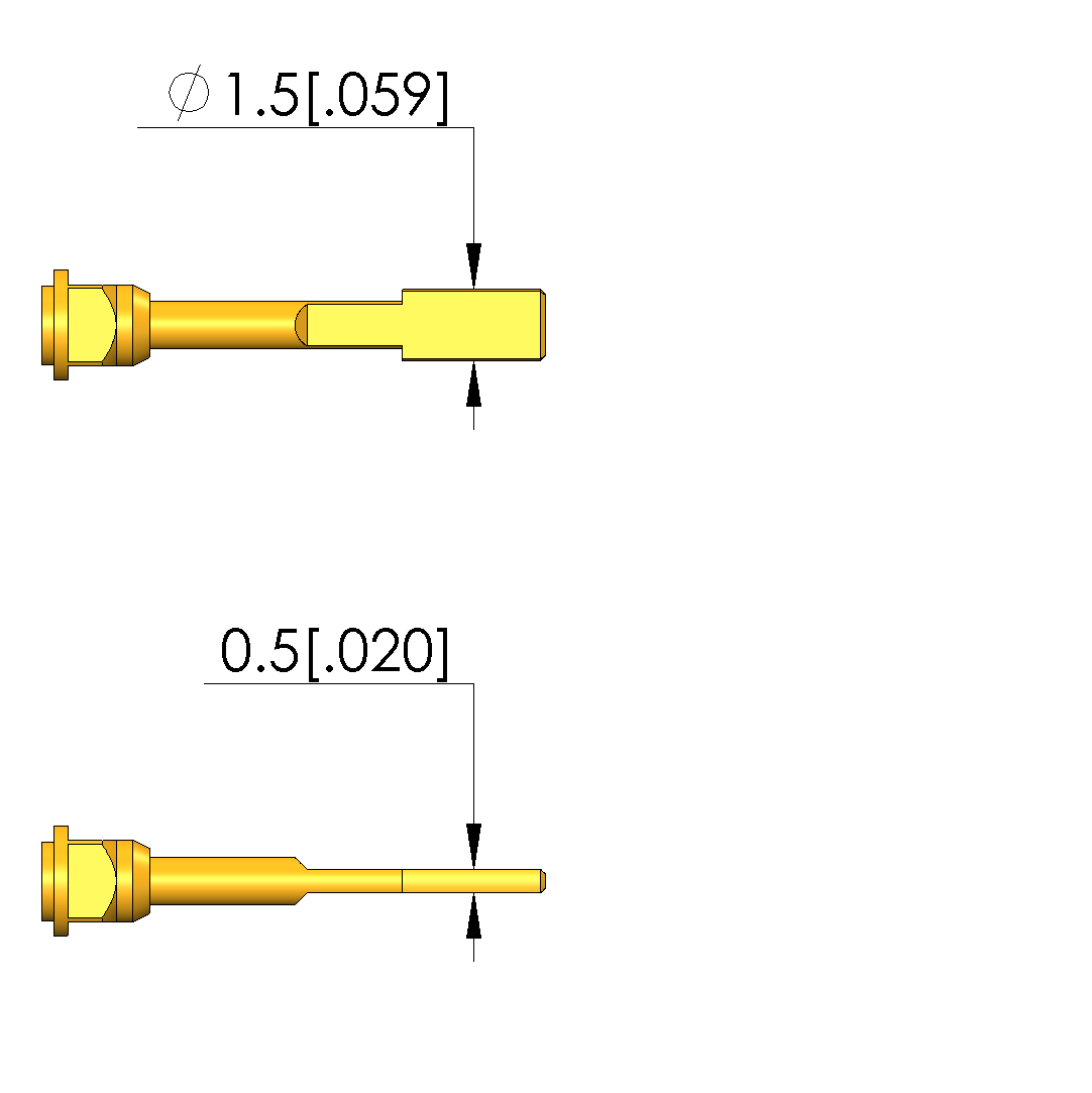 • Continuous plunger: ø0,8 x 0,46 x 5,8