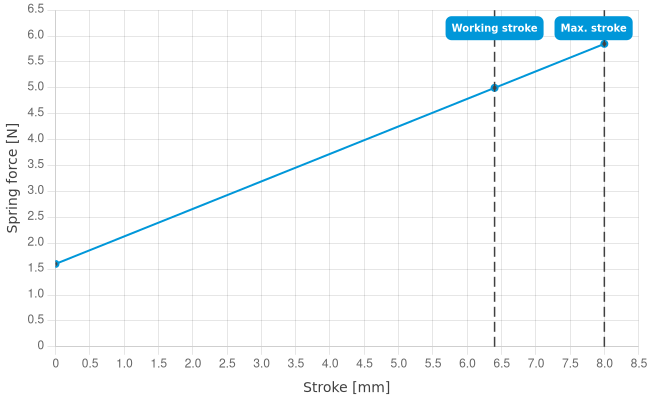 • Spring force at working stroke: 5 N [17.9 ozf]